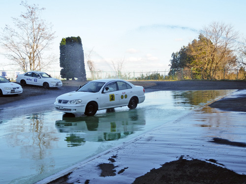 すべりやすい路面でABS(アンチロックブレーキシステム)の性能とその操作を体験していただきます。